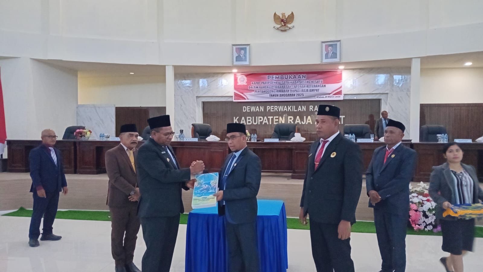 Rapat berlangsung di ruang sidang utama DPRK Raja Ampat dan dipimpin Ketua DPRK Muhammad Taufik Sarasa, didampingi Wakil Ketua I Yehuda Manggarai dan Wakil Ketua III Badarudin Mayalibit. Hadir dalam rapat tersebut Bupati Raja Ampat Orideko Iriano Burdam, Wakil Bupati Mansur Syahdan, unsur Forkopimda, serta pimpinan OPD.