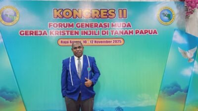 WAISAI, RajaAmpatNews — Ketua Umum Forum Generasi Muda (FGM) GKI Papua Barat, Prof. Dr. Ir. Sepus M. Fatem, S.Hut., M.Sc., IPU, memperkenalkan karya terbarunya yang berjudul “Alkitab dan Konservasi Alam” — sebuah buku yang memadukan kajian teologis dan ekologis tentang hubungan manusia, iman Kristen, serta tanggung jawab terhadap alam ciptaan.