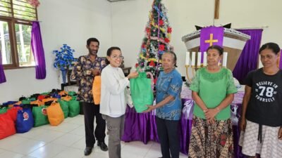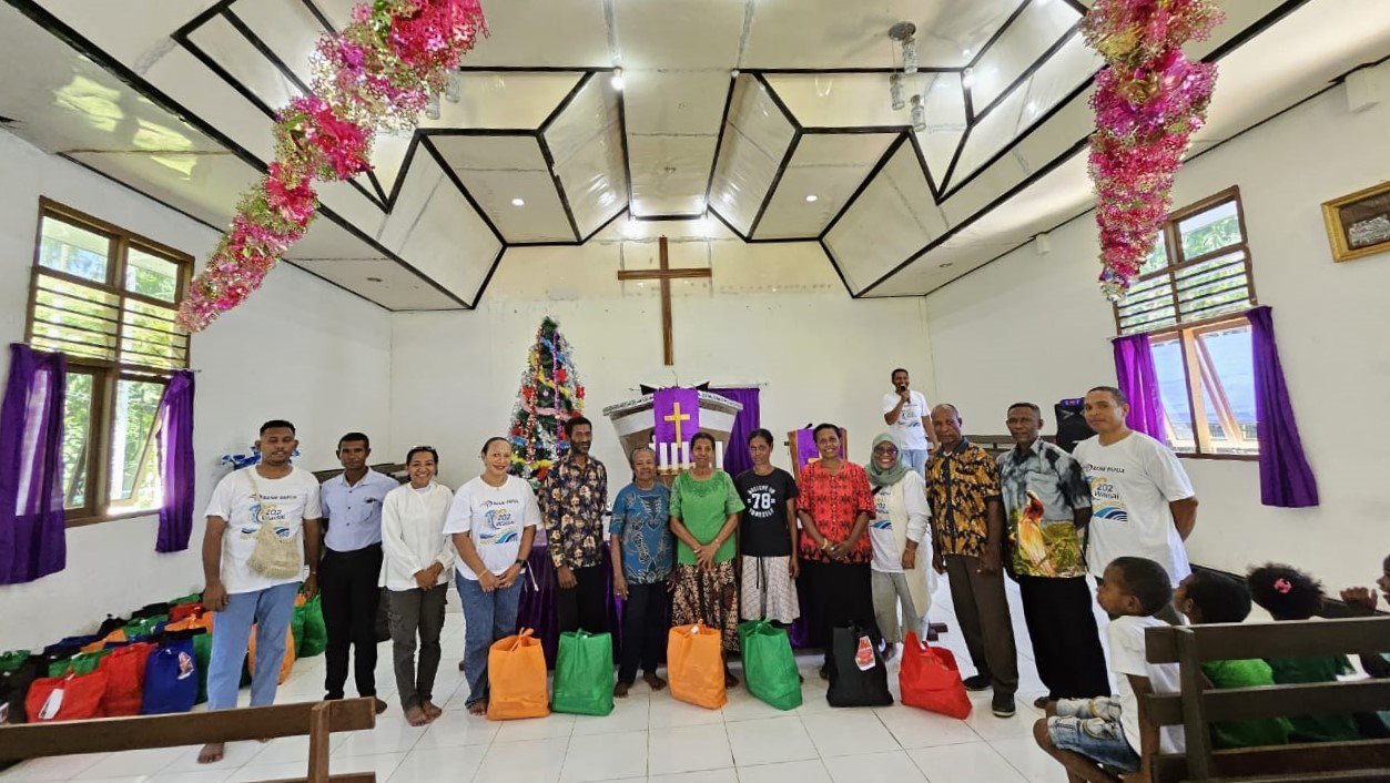 Waisai, RajaAmpatNews– Badan Persekutuan Oikumene Bank (BAPEKRIS) Bank Papua Kantor Cabang Waisai melaksanakan kegiatan Natal berupa anjangsana dan penyerahan bantuan kasih kepada masyarakat Kampung Mumes, Distrik Teluk Mayalibit, Kabupaten Raja Ampat, Sabtu (20/12/2025).