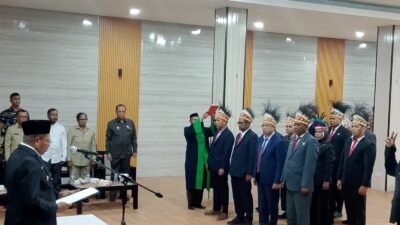 WAISAI, RajaAmpatNews – Sebanyak 35 Pejabat Pimpinan Tinggi Pratama (Eselon II.B) di lingkungan Pemerintah Kabupaten Raja Ampat resmi dilantik dan diambil sumpah jabatannya, Jumat (13/2/2026). Prosesi pelantikan berlangsung di Aula Kantor Bappeda Kabupaten Raja Ampat dan dipimpin langsung oleh Bupati Raja Ampat, Orideko Iriano Burdam.