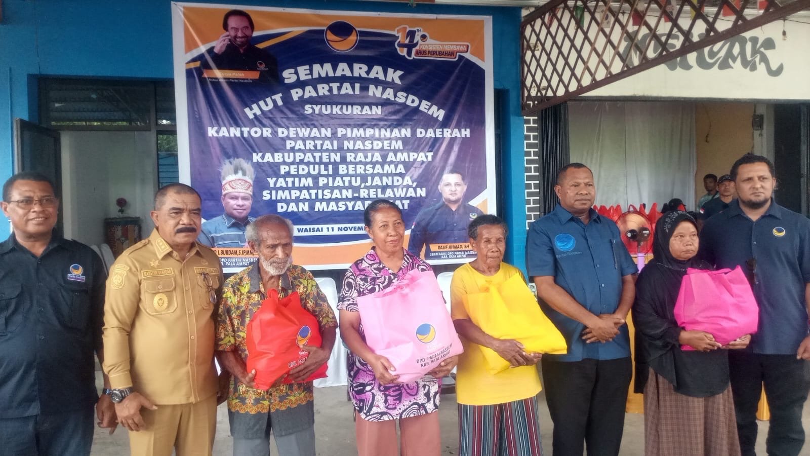 “Selain memperingati HUT ke-14 Partai NasDem, kami juga melaksanakan bakti sosial berupa pembagian sembako dan tali asih kepada yatim piatu, janda, simpatisan, serta masyarakat. Momentum ini juga kami rangkaikan dengan syukuran penempatan kantor baru DPD Partai NasDem Raja Ampat,” ujar Orideko.