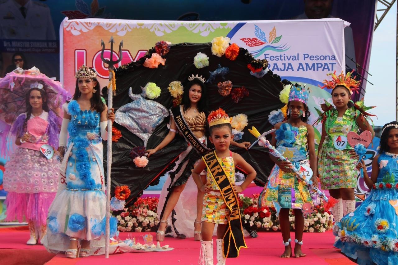 Lomba fashion show tersebut diikuti siswa dari tingkat SD, SMP, hingga SMA se-Kabupaten Raja Ampat. Mereka menampilkan beragam busana menawan yang terbuat dari kantong kresek, bungkus kopi, hingga plastik makanan ringan. Setiap karya memperlihatkan kreativitas tinggi sekaligus mengingatkan publik akan bahaya sampah plastik bagi laut dan ekosistem sekitarnya.