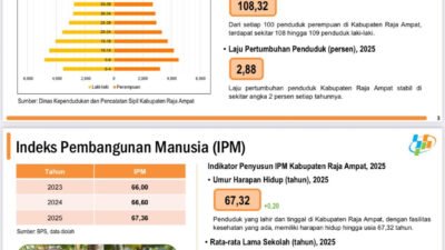 RAJA AMPAT – Kualitas hidup masyarakat di Kabupaten Raja Ampat menunjukkan tren membaik. Data Badan Pusat Statistik (BPS) Kabupaten Raja Ampat mencatat Indeks Pembangunan Manusia (IPM) pada 2025 mencapai 67,36, naik dari 66,60 pada 2024 dan 66,00 pada 2023.