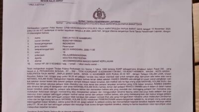 Adapun kasus ini telah dilaporkan secara resmi dengan Laporan Polisi Nomor: LP/B/145/2025/SPKT/POLRES RAJA AMPAT/POLDA PAPUA BARAT DAYA, tertanggal 19 November 2025.