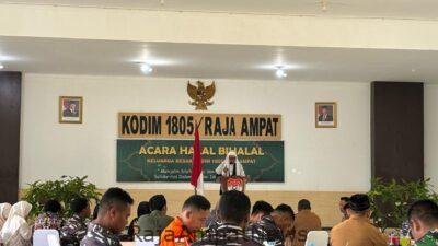 Waisai, RajaAmpatNews – Suasana hangat dan penuh keakraban menyelimuti Aula Dharma Wangsa Kodim 1805/Raja Ampat pada Selasa (15/4/2025) siang. Dalam semangat Idulfitri 1446 Hijriah, keluarga besar Kodim 1805/RA menggelar acara halal bihalal bertema “Menjalin Silaturahmi dan Meningkatkan Solidaritas dalam Bingkai Idulfitri 1446 H.”