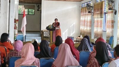 Mengakhiri sambutannya, Ny. Habiba menyampaikan dua pantun yang mengundang senyum sekaligus menyimpan pesan mendalam tentang pentingnya menjaga kebersamaan dan semangat gotong royong dalam membangun keluarga dan masyarakat.
