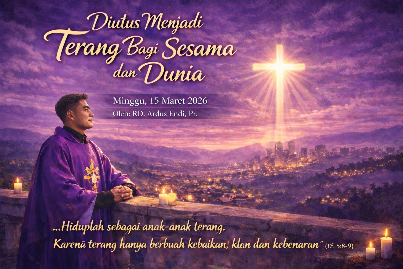 Dengan kata lain, hidup dan karya profesi kita mesti berdaya ubah sekaligus berdayaguna tidak hanya bagi diri kita sendiri, melainkan juga bagi sesama di sekitar kita. Bagi Rasul Paulus, orang yang mampu menjadi “terang” bagi sesama akan selalu mampu menghadirkan kebaikan, selalu berani menegakkan kebenaran, selalu mampu memperjuangkan keadilan serta selalu setia mengalirkan berkat kebahagiaan bagi sesama.