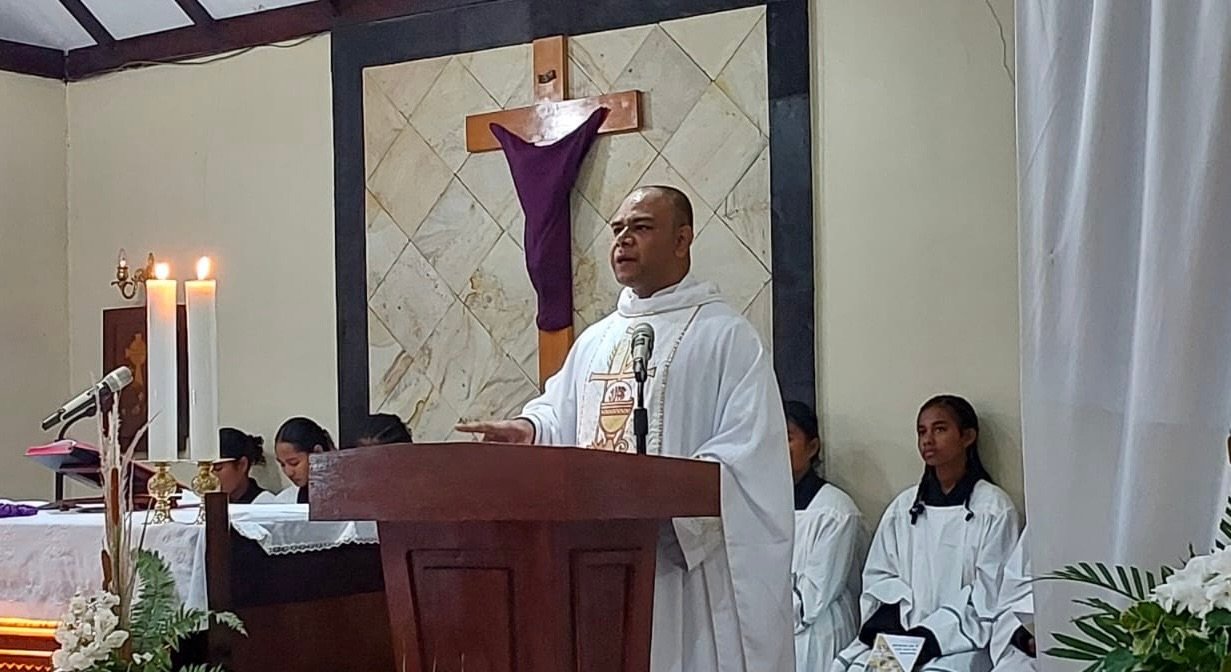 “Ini bukan sekadar simbol, tetapi tindakan nyata pengorbanan total. Yesus merendahkan diri secara radikal demi keselamatan manusia,” kata Pastor Max Pegan.