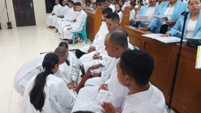 RAJA AMPAT– Umat Katolik di Waisai, Kabupaten Raja Ampat, diajak merenungkan nilai kerendahan hati dan pengorbanan dalam perayaan Kamis Putih yang berlangsung khidmat di Gereja Katolik Stasi Sta. Maria Mater Dei, Kamis (2/4/2026). Misa dipimpin oleh Pastor Max Pegan, Pr, yang dalam homilinya menegaskan pentingnya meneladani sikap Yesus Kristus dalam kehidupan sehari-hari.