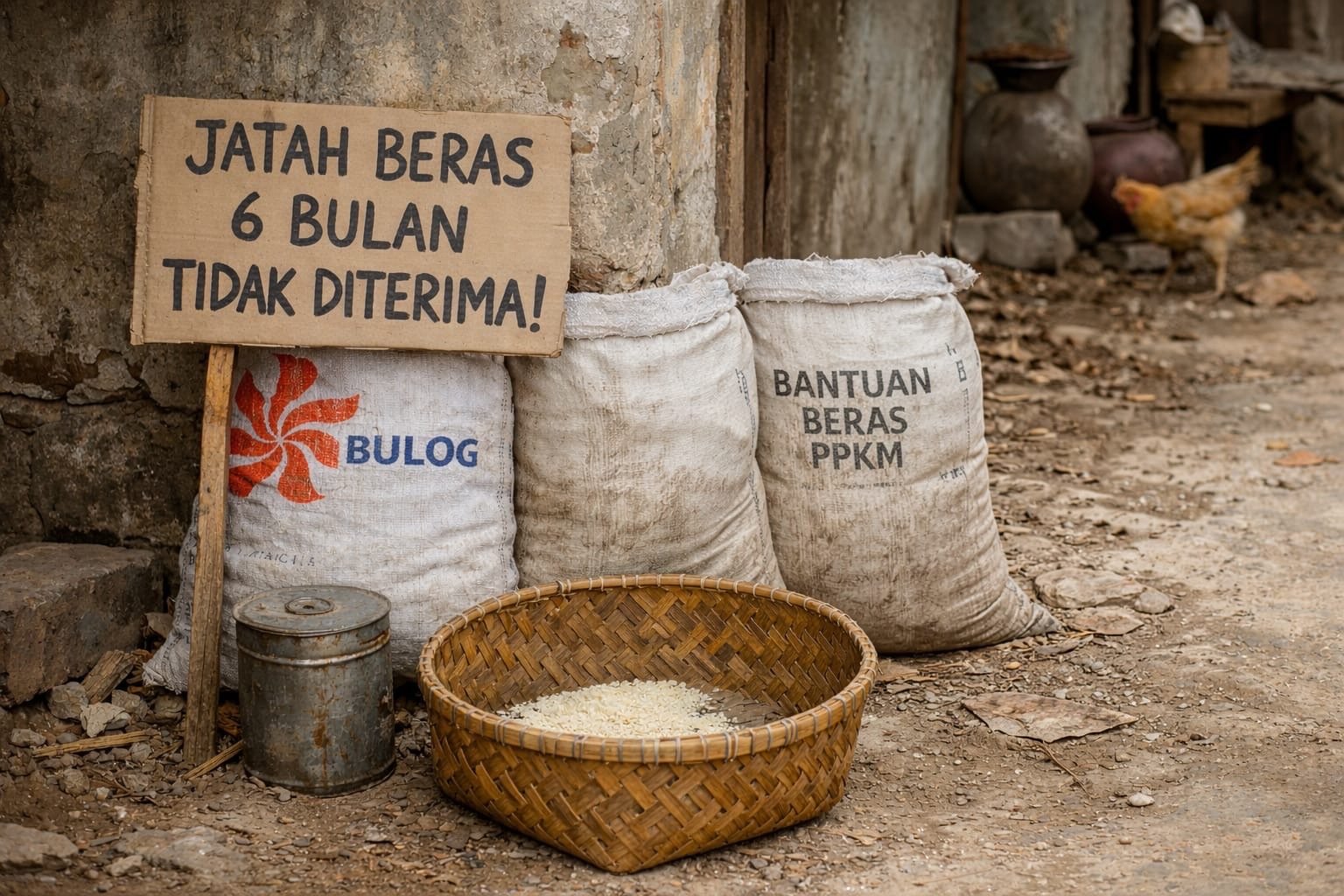 “Setiap bulan gaji kami dipotong untuk beras. Artinya secara administrasi beras itu ada. Tapi sampai sekarang kami belum terima,” kata Pua.