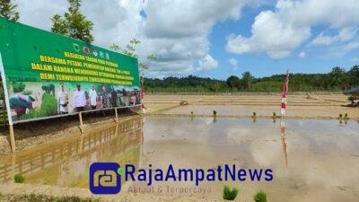 Selain upacara, PJS Bupati yang didampingi tamu undangan melaksanakan penanaman padi pada areal persawahan masyarakat.