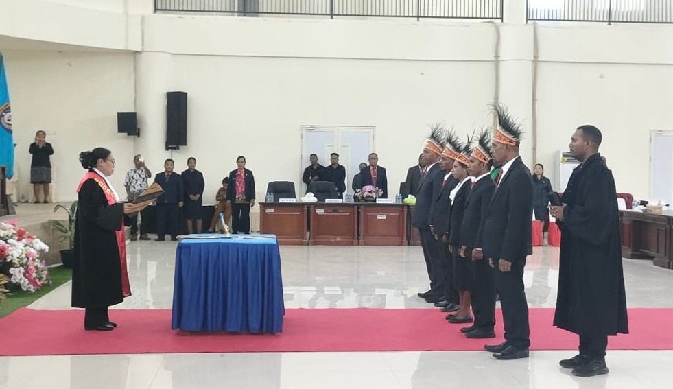 Ketua Pengadilan Negeri Sorong, Helmin Somalay, S.H., M.H., melantik sekaligus mengambil sumpah Jandi jabatan lima Anggota DPRK Raja Ampat jalur Pengangkatan Otsus s berlangsung dengan penuh khidmat di aula Kantor DPRK Raja Ampat. Senin,( 24/11/2025).