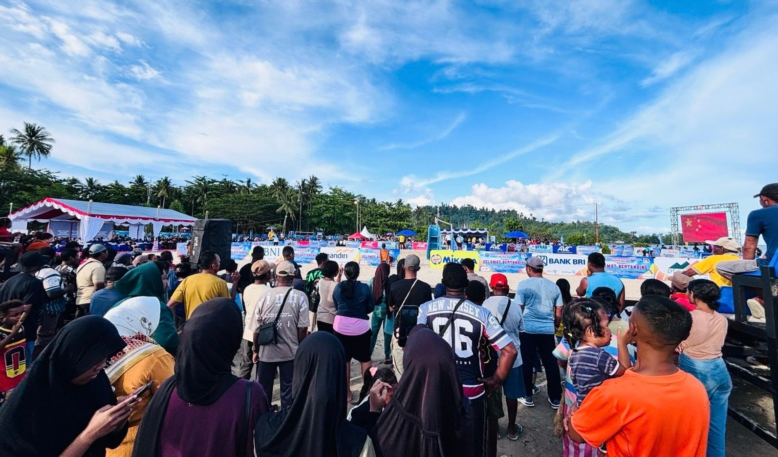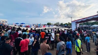 RAJA AMPAT – Ribuan penonton kembali memadati kawasan Pantai WTC pada hari kedua ajang bergengsi AVC Beach Volleyball Tour Raja Ampat Open 2026, Selasa (7/4/2026). Antusiasme masyarakat dan wisatawan yang tinggi menciptakan suasana meriah sekaligus menegangkan di sepanjang arena pertandingan.