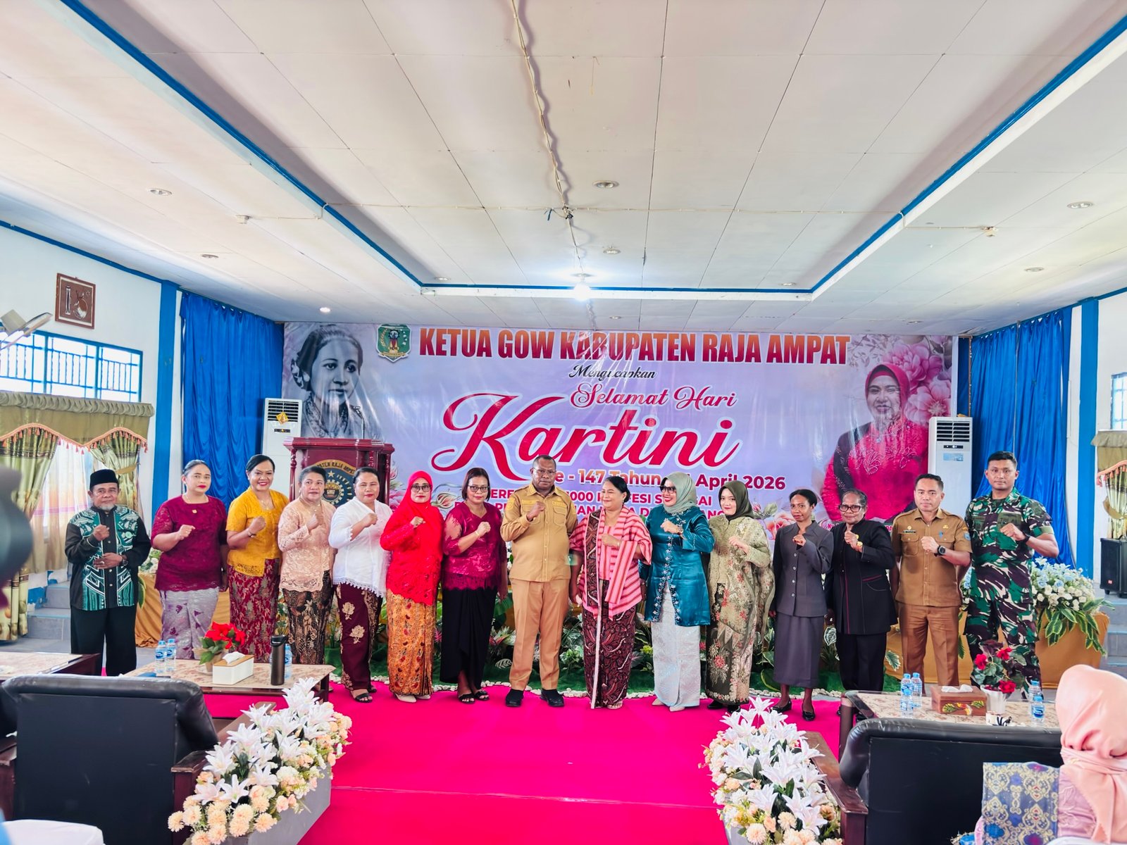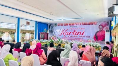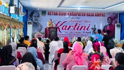 RAJA AMPAT – Gabungan Organisasi Wanita (GOW) Kabupaten Raja Ampat menggelar peringatan Hari Ulang Tahun ke-147 Raden Ajeng Kartini tahun 2026 dengan tema “Perempuan 1000 Profesi sebagai Pilar Pembangunan Masa Depan Bangsa”. Kegiatan ini berlangsung di Aula Gedung Syalome Syeben, Waisai, Selasa (21/4/2026).