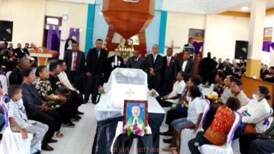 Ratusan jemaat, kerabat, dan pelayan Tuhan dari berbagai wilayah di Tanah Papua hadir, memenuhi rumah ibadah dengan linangan air mata dan doa syukur atas hidup dan pengabdian seorang hamba Tuhan yang telah menyelesaikan pertandingan imannya.