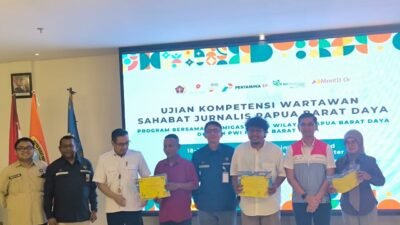 Sorong, RajaAmpatNews — Persatuan Wartawan Indonesia (PWI) Papua Barat Daya bekerja sama dengan SKK Migas menggelar Ujian Kompetensi Wartawan (UKW) di Kota Sorong, Sabtu (18/10/2025).