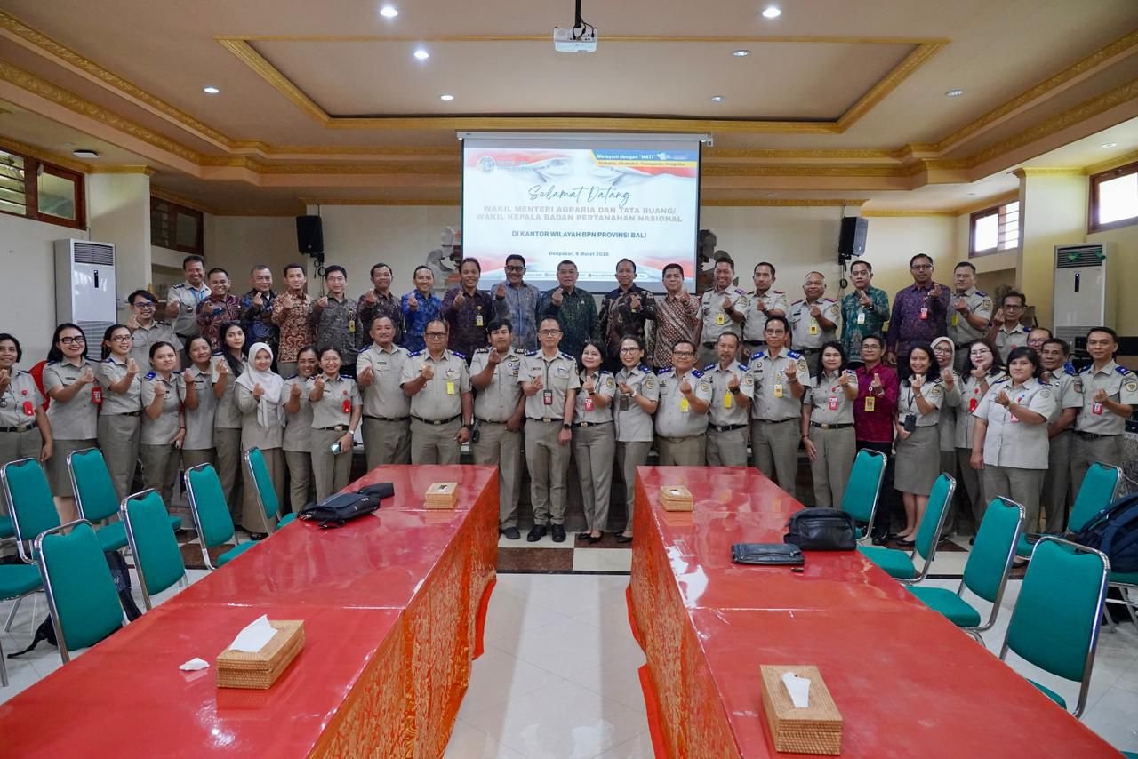 Bali, RajaAmpatNews-Wakil Menteri Agraria dan Tata Ruang/Wakil Kepala Badan Pertanahan Nasional (Wamen ATR/Waka BPN) Ossy Dermawan mengapresiasi kinerja jajaran Kantor Wilayah Badan Pertanahan Nasional (Kanwil BPN) Provinsi Bali yang dinilai berhasil menunjukkan kemajuan signifikan dalam pelayanan pertanahan. Apresiasi tersebut disampaikan saat kegiatan sharing session bersama seluruh jajaran Kanwil BPN Provinsi Bali, Senin (9/3/2026).